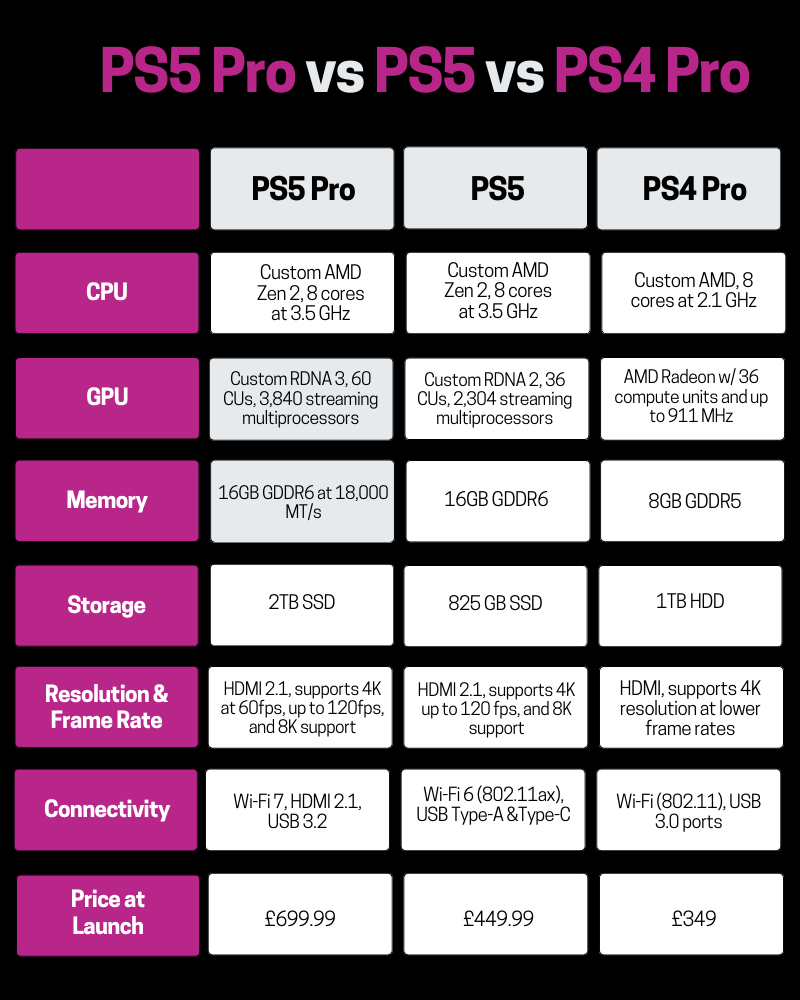 PS5 Pro vs PS5 vs PS4 Pro Specs